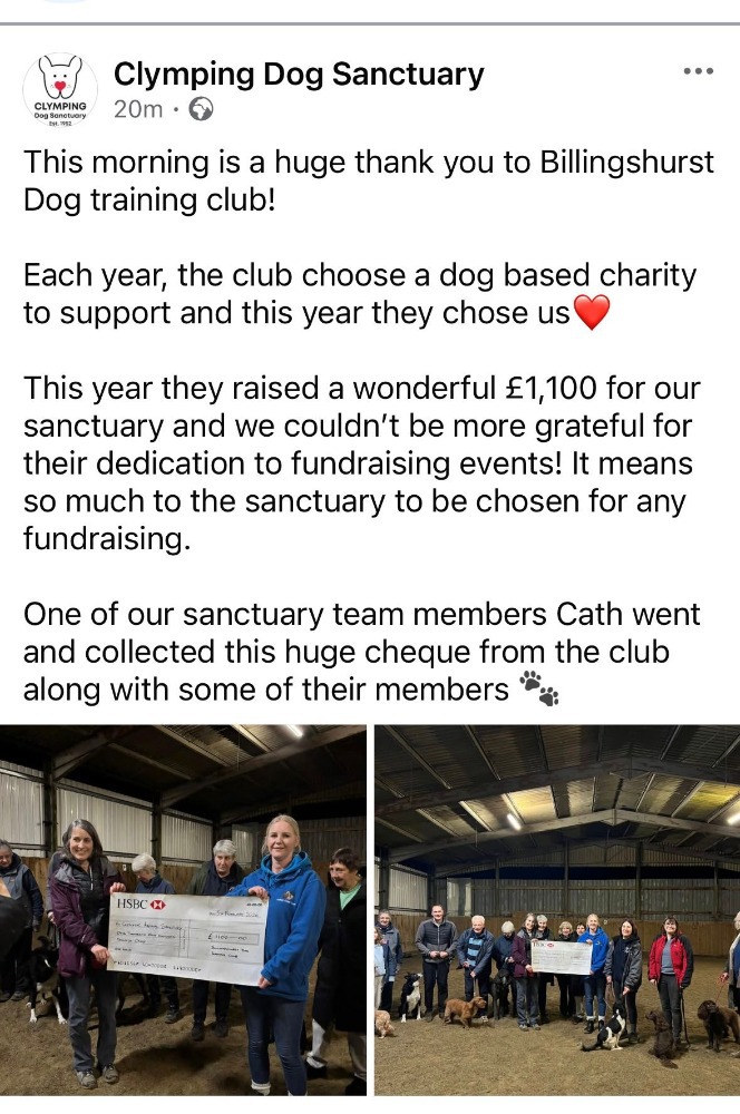 Charity 2024/2025 Clymping Dog Sanctuary: £1100.00